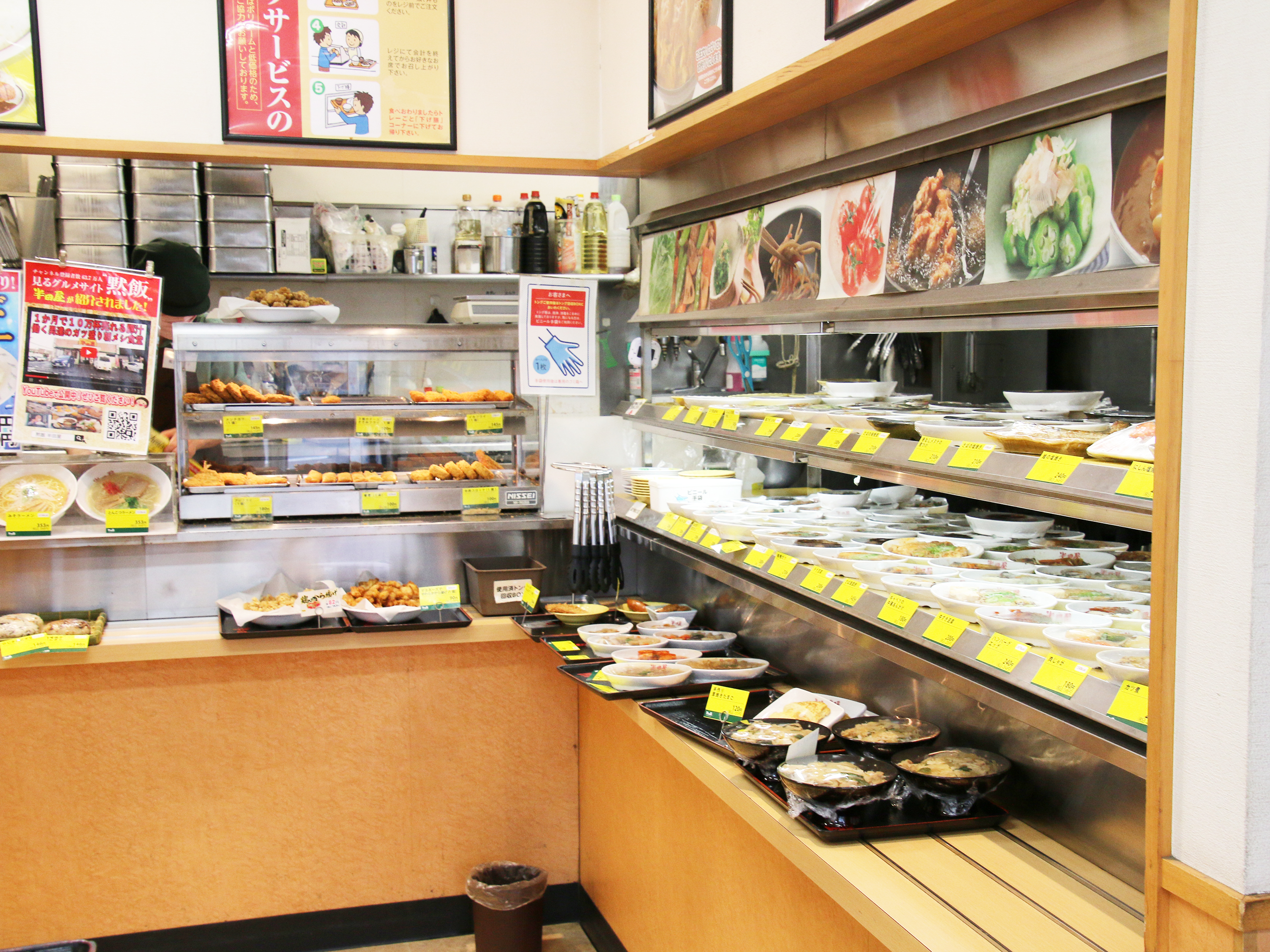おかずは食べたいものを食べたいだけ取っていただき、麺やご飯ものはレジで注文を聞くという導線です。だから半田屋にはホール担当がおらず、全員が調理兼レジスタッフなんです。