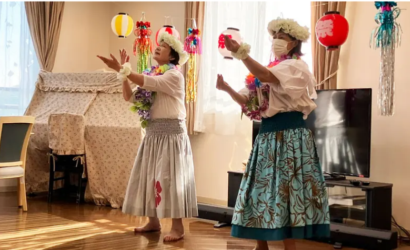 「ポンセジュール山鼻夏祭り」を開催。その中で、ご入居者様とスタッフによるフラダンスの発表がありました。練習の成果を存分に発揮してくださり、拍手喝采の締めくくりとなりました。