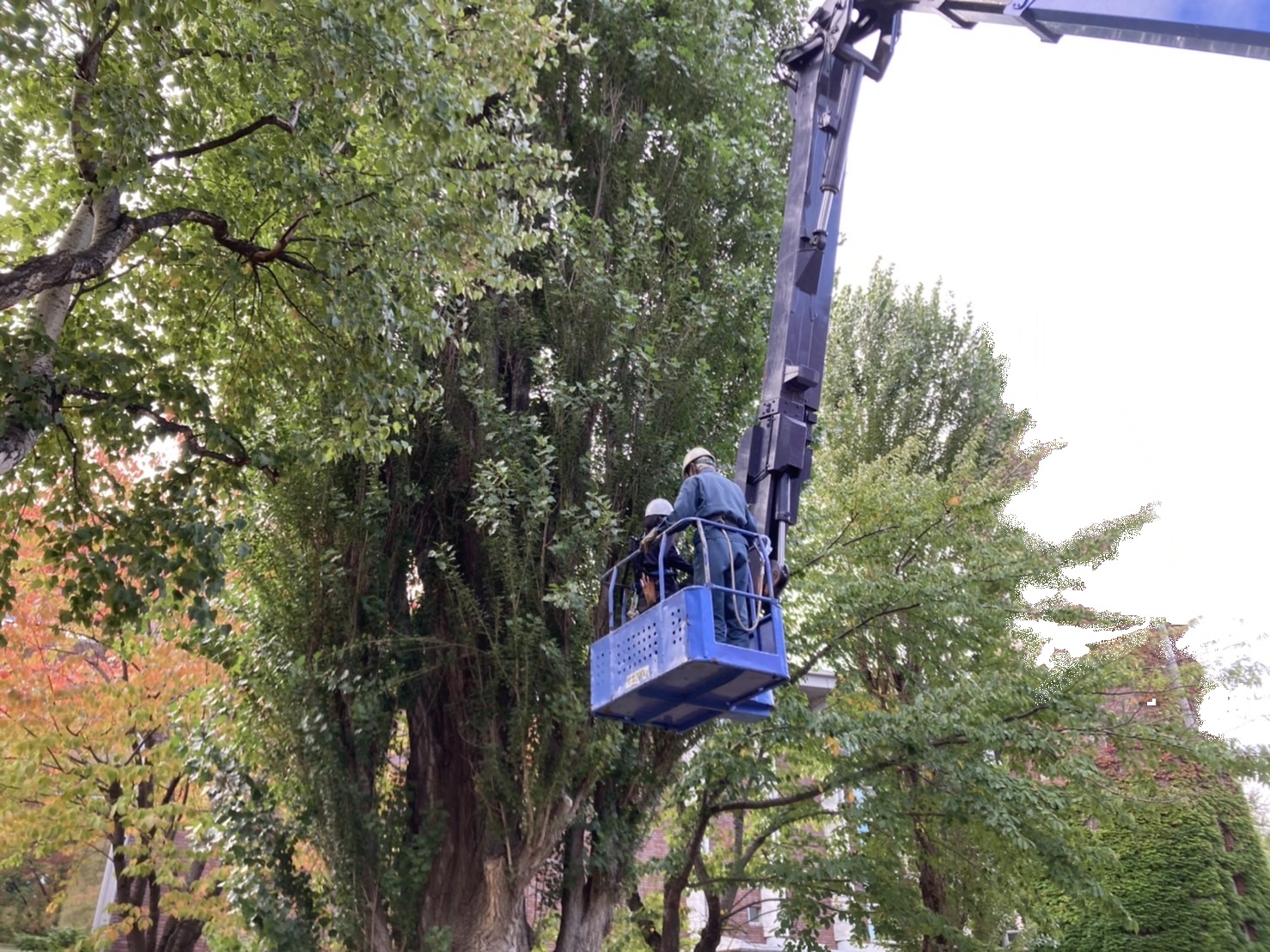 <ベテラン職人と孫世代ペアによる高所剪定>現在は20〜70代の男女スタッフが活躍中!プライベートのご都合によるシフト調整などもお気軽にご相談くださいね。