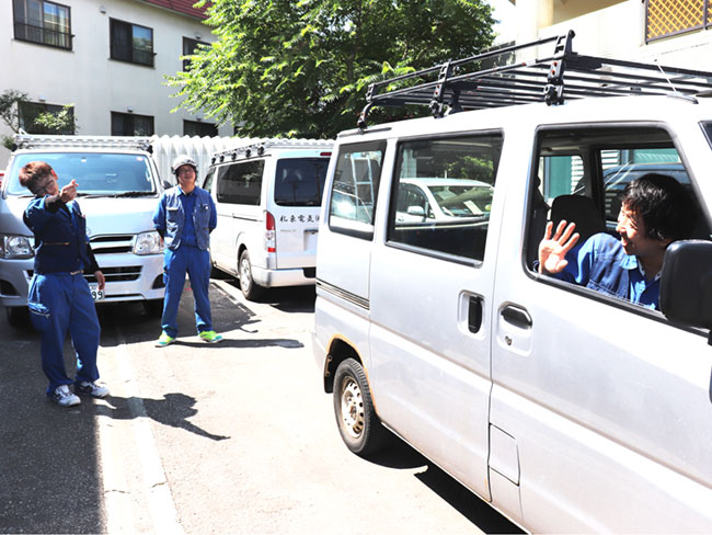 現場へは乗り合わせて向かうので、自家用車が無い方や免許がない方もご安心ください。