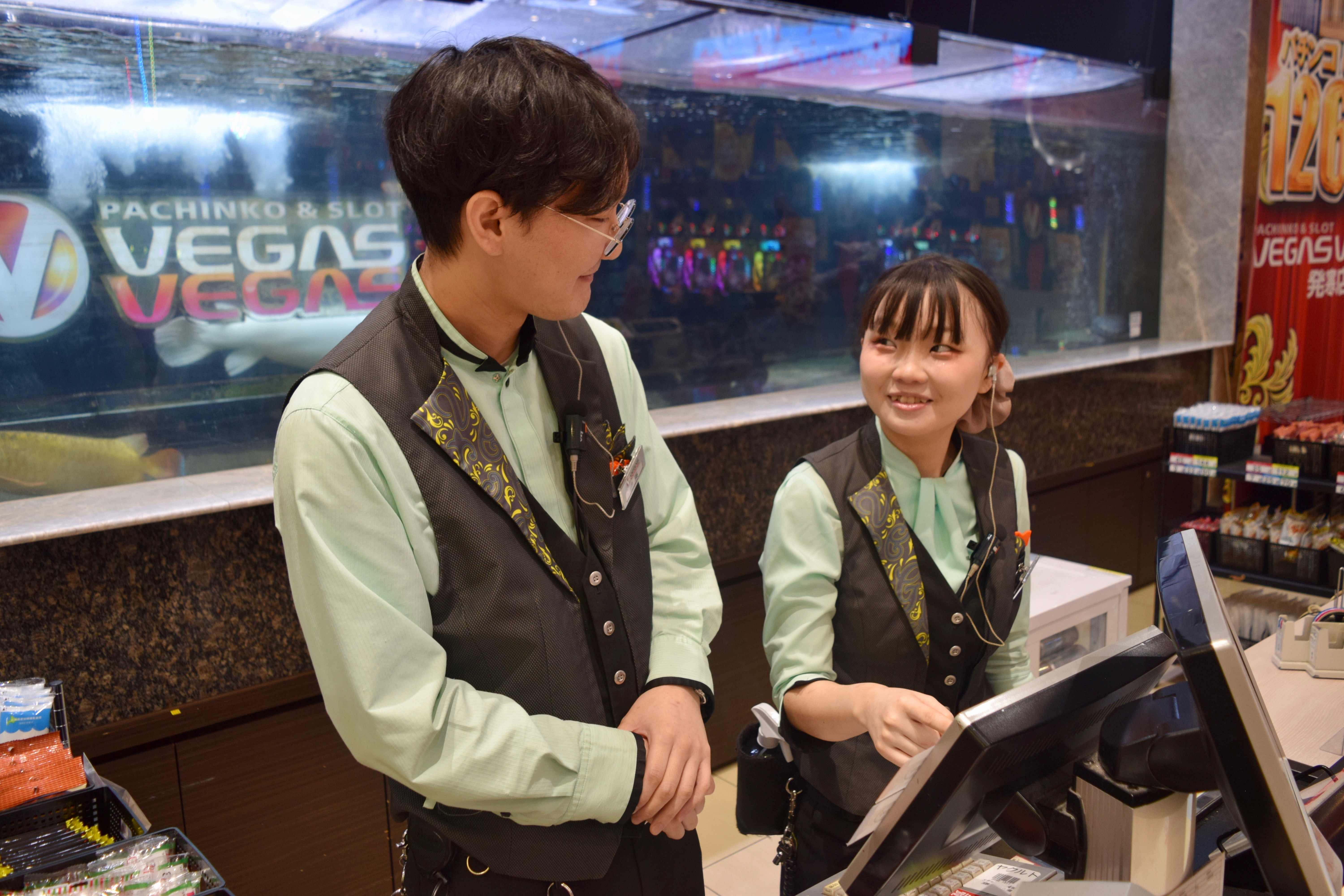 (B)私はパチンコが好きで、そんな空間で働きたいと思い入社しました。周りにも経験者のスタッフが多いですね。