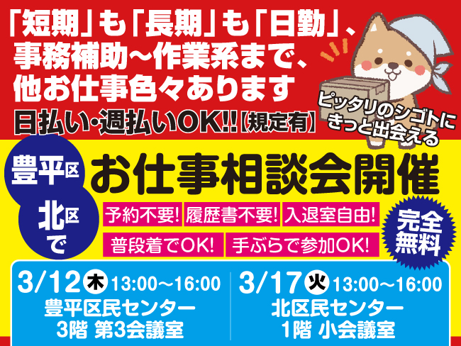 あり(ご本人の希望等により、当社の担当する派遣先へ異動・配置転換可能)